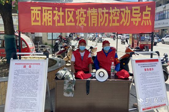 黃梅縣孔壟鎮(zhèn)西廂社區(qū)疫情防控勸導(dǎo)點在開展防疫宣傳工作。通訊員 供圖