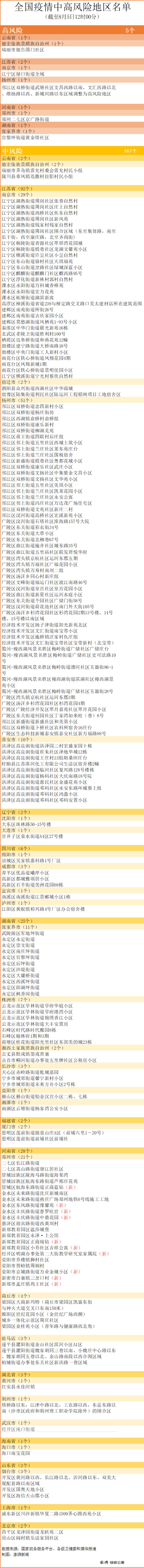 目前全國(guó)已有17個(gè)省份報(bào)告現(xiàn)有本土確診病例或無癥狀感染者,全國(guó)現(xiàn)有高風(fēng)險(xiǎn)地區(qū)5個(gè),中風(fēng)險(xiǎn)區(qū)167個(gè)。