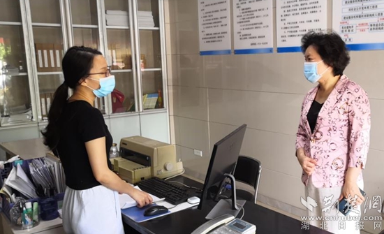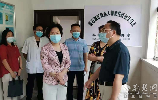 盧素琴在黃石港區(qū)殘疾人就業(yè)服務(wù)所指導(dǎo)疫情防控工作。通訊員供圖