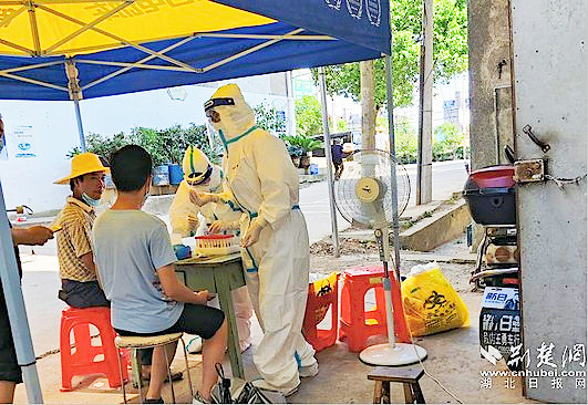 當(dāng)天上午8點(diǎn)整,小分隊(duì)準(zhǔn)時(shí)抵達(dá)段店鎮(zhèn)。烈日下,醫(yī)護(hù)人員穿著厚厚的防護(hù)服,立即進(jìn)入緊張的工作狀態(tài),完成2475人次核酸采集。