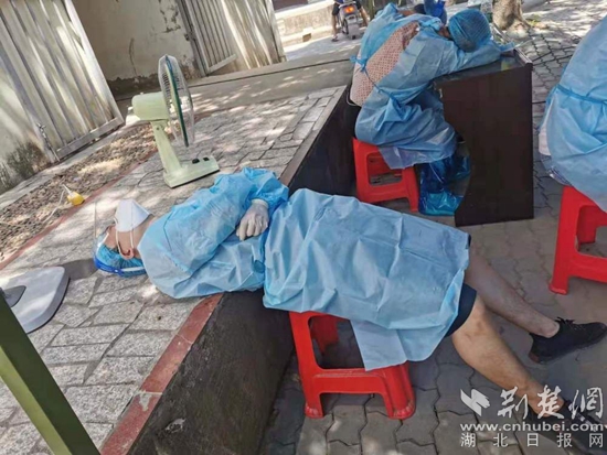 疲憊的醫(yī)護(hù)人員原地休息。通訊員供圖
