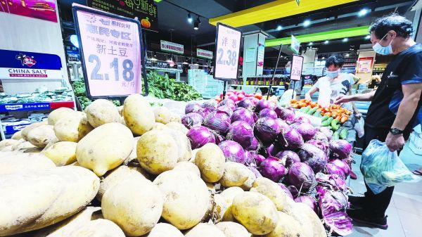 8月10日,在荊門市東方百貨大廈豪景花園小區(qū)店內(nèi),各種蔬菜、水果琳瑯滿目。據(jù)該超市一負(fù)責(zé)人介紹,連日來,超市采購進(jìn)一步拓寬了貨源渠道,及時(shí)補(bǔ)充了供應(yīng)貨源,目前超市內(nèi)米、油、水果、蔬菜等生活必需品貨源充足,價(jià)格穩(wěn)定。記者 方麗榮 攝