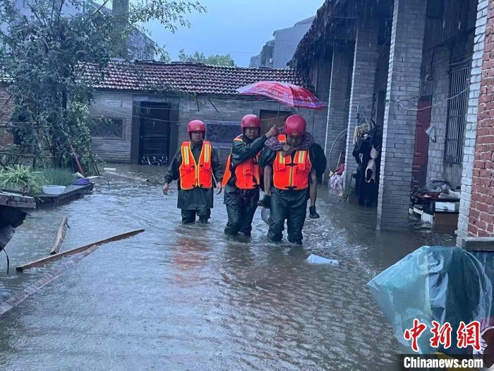 圖為救援人員在宜城轉(zhuǎn)移被困人員 王耀文 攝