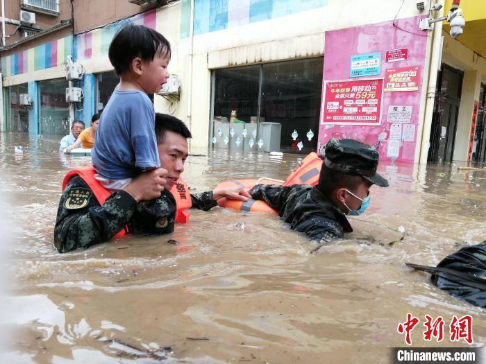 圖為武警官兵在隨州何店鎮(zhèn)轉(zhuǎn)移受災(zāi)人員 陳一帆 攝
