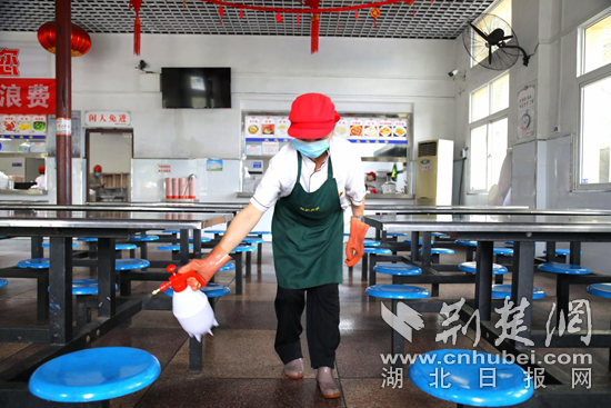工作人員對(duì)食堂進(jìn)行消殺。通訊員 供圖