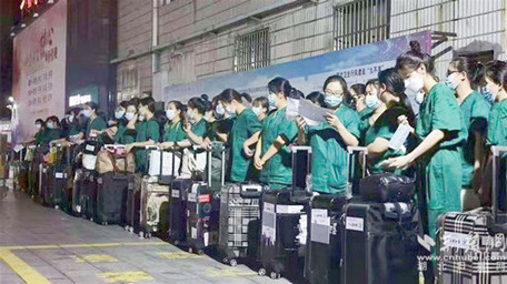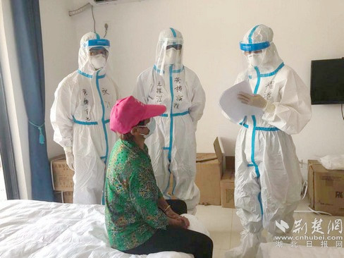 “看著這群像我的兒女一樣大的小朋友們這么辛苦這么累,心痛死了!跟著她們一起,我又感覺年輕不少!”黃梅縣人民醫(yī)院健康管理科護(hù)士陳曄說,每次近距離接觸的操作,不光面對病毒高風(fēng)險的考驗(yàn),在高溫天氣的影響下,穿著不透氣的防護(hù)服工作,即使不動也是全身出汗。