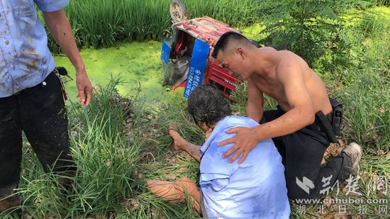 荊楚網(wǎng)(湖北日報網(wǎng))訊(通訊員朱嘉偉 張劍) 祖孫四人不慎連人帶車翻入路邊的深水溝中,兩人被壓在車下……危急時刻,巡邏至此的武穴市公安局萬丈湖派出所民輔警聽到呼救聲后,立即沖進(jìn)溝中,成功將溝里的祖孫四人救起。這是8月18日上午發(fā)生在武穴市伊利奶牛場附近路段的驚險一幕。