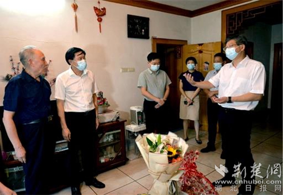 鄂州市中心醫(yī)院原副院長(zhǎng)尹學(xué)恩家中慰問。通訊員供圖