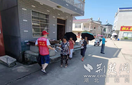 工作人員勸導(dǎo)村民出門戴口罩。通訊員 供圖