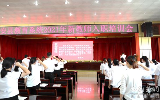 荊楚網(wǎng)(湖北日?qǐng)?bào)網(wǎng))訊(通訊員 劉先瑩 ) 8月21日上午,紅安二中多功能報(bào)告廳內(nèi)座無(wú)虛席,紅安縣教育系統(tǒng)2021年新教師入職培訓(xùn)活動(dòng)在此舉行,168名新入職教師在教育局長(zhǎng)曾紅波的領(lǐng)誓下舉起右手鄭重宣誓。