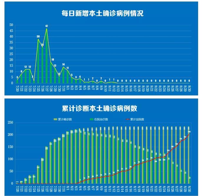 2020年1月22日至2021年8月30日24時,全省累計報告新冠肺炎確診病例1589例(其中境外輸入137例)。