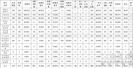 2021年1-6月份市直部門數(shù)字城管評價計分排名表。來源:黃石發(fā)布