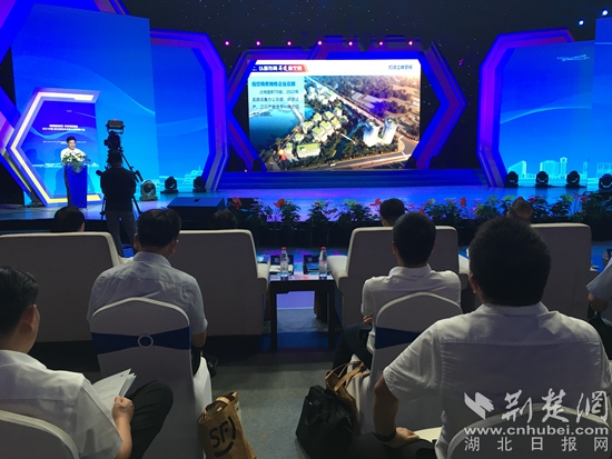 黃石港區(qū)委書記嚴(yán)榮勇作黃石港新經(jīng)濟(jì)產(chǎn)業(yè)招商推介。記者 呂鑒蕾 攝