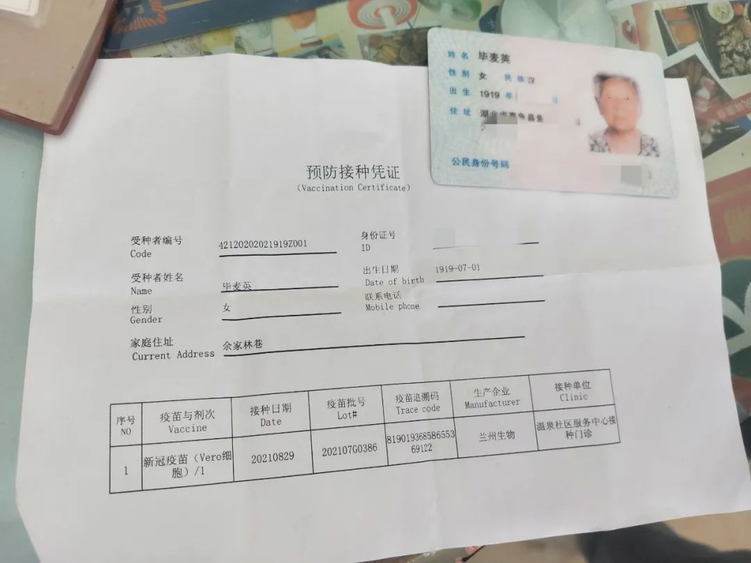 8月29日,居住在咸安區(qū)溫泉街道桂花路社區(qū)的百歲老人畢麥英,在溫泉衛(wèi)生服務中心新冠疫苗接種點接種第一劑次新冠疫苗,她是咸寧市目前最年長的新冠疫苗接種者。