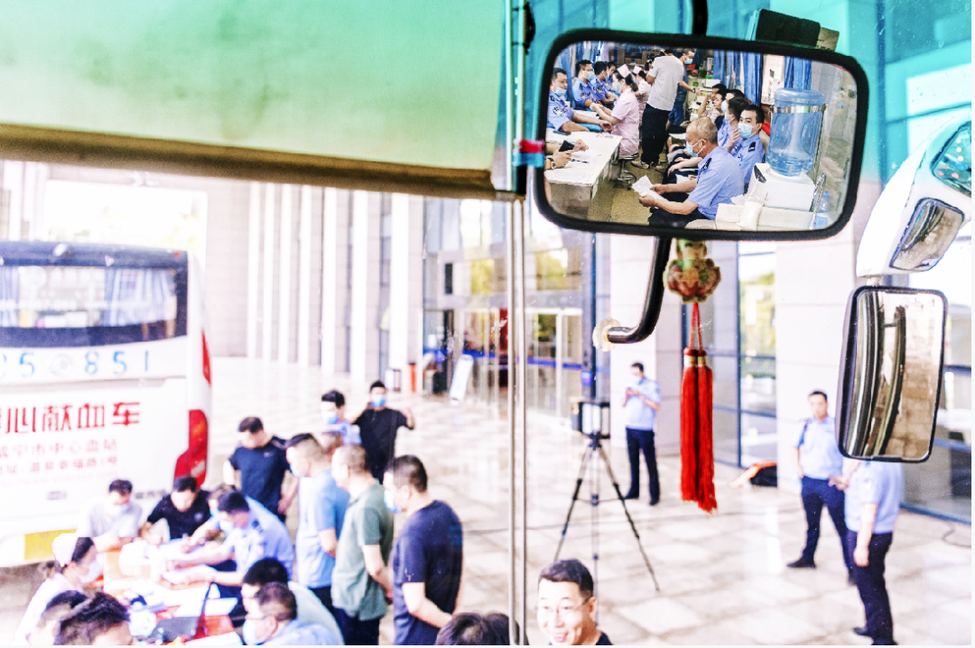 一時(shí)間,從局黨委班子成員身先示范,到“白襯衣”一馬當(dāng)先,再到“藏青藍(lán)”接踵而至。不分男女,不論老幼,歷時(shí)7小時(shí)的獻(xiàn)血活動,不斷有民警持續(xù)加入。有的剛從護(hù)校崗位趕回,有的從交通高峰崗趕回,有的篤信自己過硬的身體素質(zhì)執(zhí)意多獻(xiàn)一些……
