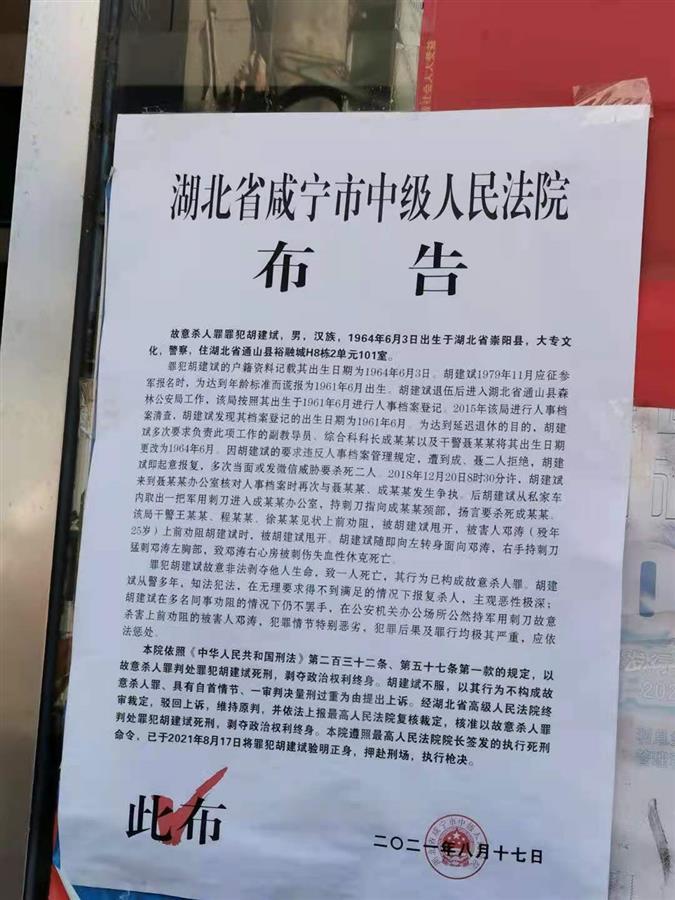 8月17日,一張由咸寧市中級(jí)人民法院發(fā)布的布告,張貼在通山縣城的大街小巷,當(dāng)?shù)乩习傩赵趪^熱議的同時(shí),一段兩年前發(fā)生在這里并鬧得沸沸揚(yáng)揚(yáng)的兇殺案,也被重新拉回到人們眼前。