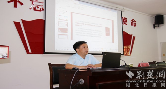 英山縣紀(jì)委常委、監(jiān)委委員雷剛作《政務(wù)處分法》專題輔導(dǎo)課。