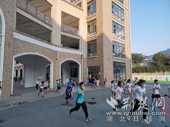 警報(bào)響起,師生迅速撤離大樓。通訊員 供圖