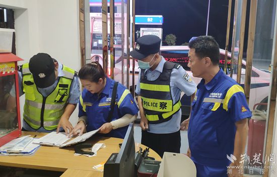 9月18日晚,黃梅縣公安局深入各加油氣站進(jìn)行散裝汽油銷售情況進(jìn)行檢查 。通訊員 供圖