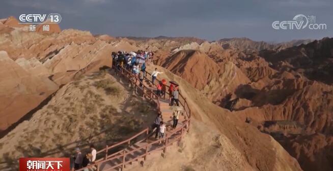今年的中秋假期,甘肅張掖吸引了眾多游客前來游玩。從遼寧來的游客對張掖丹霞景區(qū)慕名已久,這次正好趁著小長假跟家人朋友一起來游玩,色彩艷麗、氣勢磅礴的彩色丘陵讓他贊嘆不已。