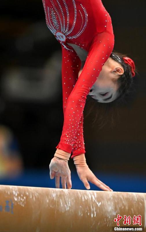 9月20日上午,第十四屆全運(yùn)會(huì)體操女子預(yù)賽在西安舉行。圖為湖北選手商春松在平衡木比賽中。 中新社記者 侯宇 攝