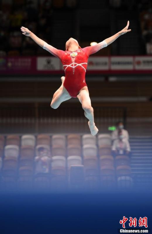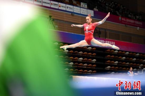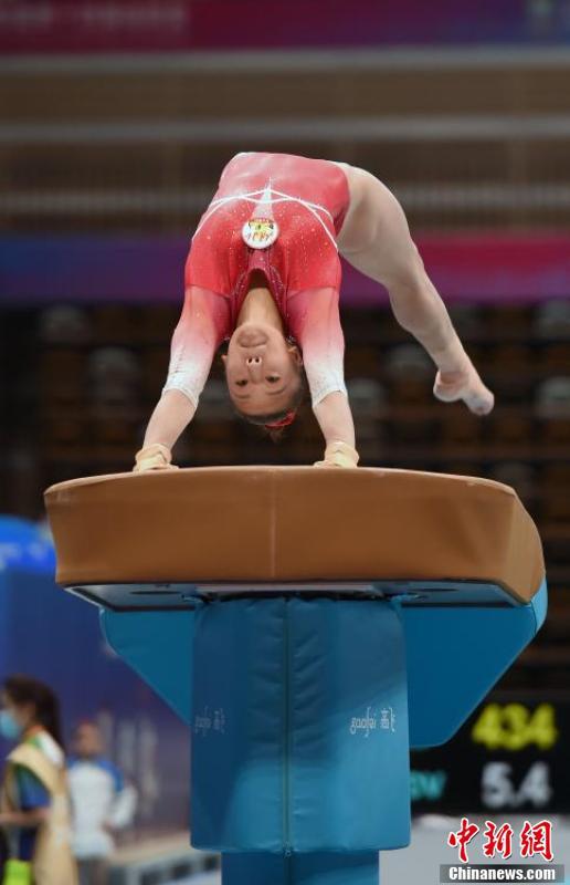 9月20日上午,第十四屆全運(yùn)會(huì)體操女子預(yù)賽在西安舉行。圖為湖北選手商春松在跳馬比賽中。 中新社記者 侯宇 攝