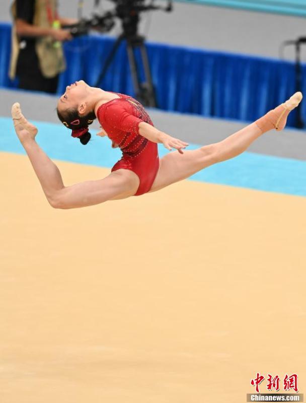 9月20日上午,第十四屆全運(yùn)會(huì)體操女子預(yù)賽在西安舉行。圖為福建選手林子桓在自由操比賽中。 中新社記者 侯宇 攝