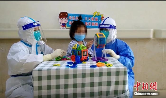 莆田學(xué)院附屬醫(yī)院里,醫(yī)護(hù)人員當(dāng)起小患者的臨時(shí)媽媽,一起搭積木。福建省立醫(yī)院護(hù)理組供圖