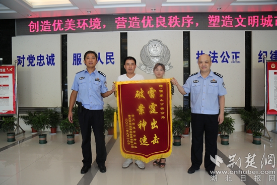 荊楚網(wǎng)(湖北日?qǐng)?bào)網(wǎng))訊(通訊員 談畫琳 劉俊云)“小偷被抓獲,大大增強(qiáng)了我們轄區(qū)居民的安全感!”9月22日,黃石市京華路社區(qū)社區(qū)干部和大上海小區(qū)物業(yè)工作人員將一面印有“雷霆出擊 破案神速”的錦旗送到黃石市公安局西塞山分局民警的手中,感謝民警破獲小區(qū)系列入室盜竊案。