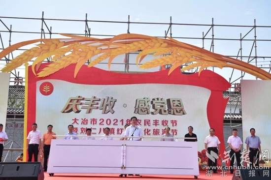 荊楚網(wǎng)(湖北日報網(wǎng))訊 (見習(xí)記者左乙辰 通訊員李文亮)9月23日,大冶市2021年中國農(nóng)民豐收節(jié)暨劉仁八鎮(zhèn)紅色文化旅游節(jié)活動在紅色革命老區(qū)開幕。