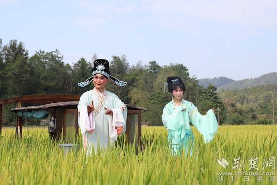 崇陽縣地方特色戲提琴戲走上田間地頭。陶然 攝