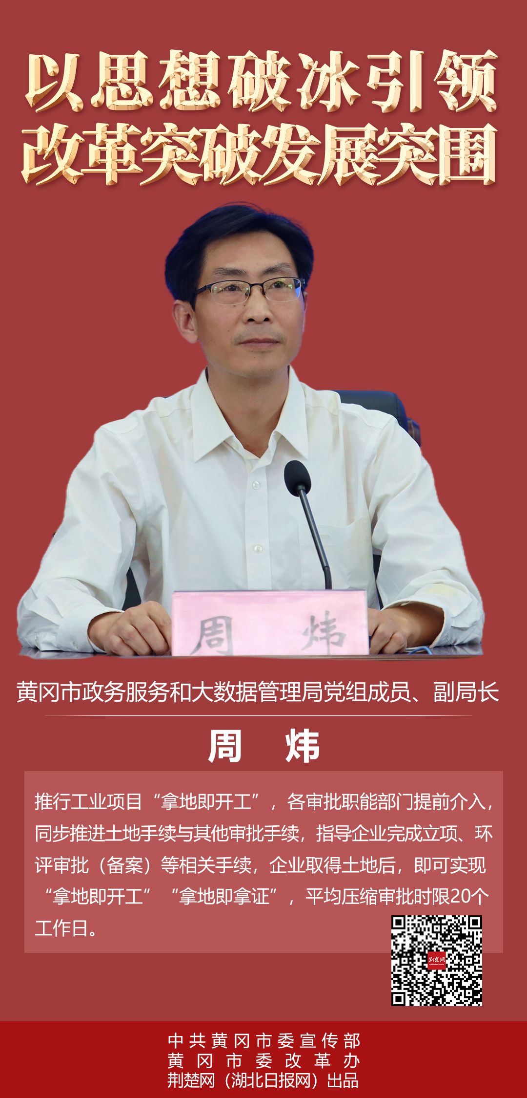 荊楚網(wǎng)(湖北日報網(wǎng))訊(記者劉璐、胡小軍 見習記者陶輝 通訊員鄭華、郭斯)9月26日下午,黃岡市舉行全面深化改革新聞發(fā)布會。記者從新聞發(fā)布會上獲悉,2021年以來,黃岡市堅持“以思想破冰引領改革突破發(fā)展突圍”,集成式推進“十大改革攻堅”,56項改革238個重點任務、30個領導領銜項目有序推進,改革工作呈現(xiàn)出全面發(fā)力、多點突破、縱深推進的良好態(tài)勢。