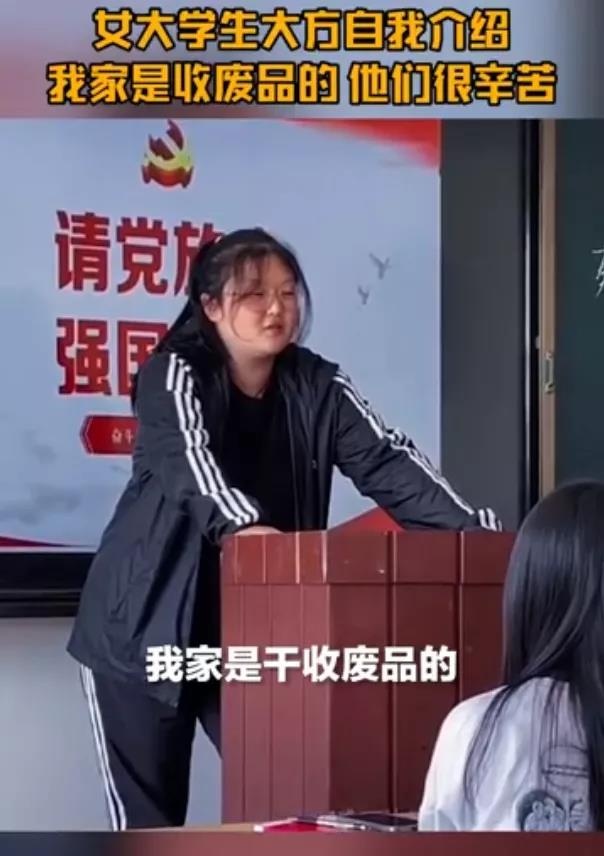 ·遼寧錦州一女大學(xué)生大方在同學(xué)面前做自我介紹:“我家是干收廢品的,父母很累!我的夢想是給我媽買個大別墅?!本W(wǎng)友:自信的女孩最美麗!