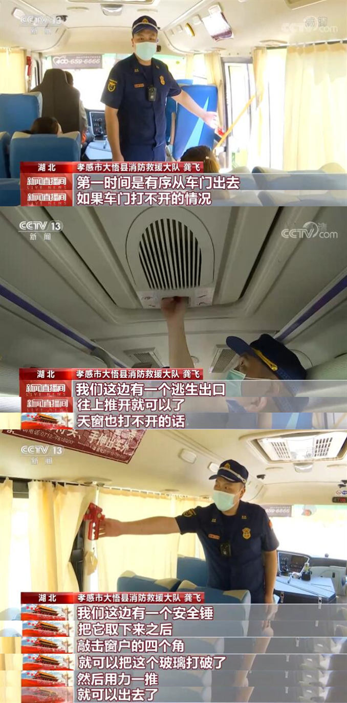 長(zhǎng)途客車(chē)一旦發(fā)生火情或者其他緊急情況,車(chē)上的乘客應(yīng)當(dāng)如何正確逃生?湖北孝感的消防監(jiān)督員在抽查長(zhǎng)途客車(chē)車(chē)載消防設(shè)施配備的同時(shí),為乘客進(jìn)行了演示。