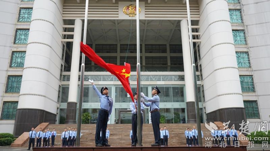 黃石市稅務(wù)局舉行升國(guó)旗儀式。 汪載舟 攝