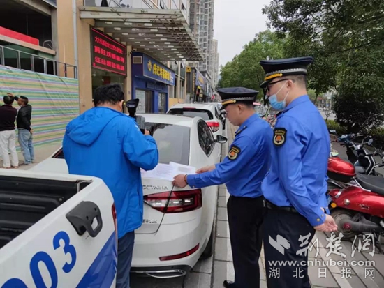 城管局執(zhí)法人員現場核對備案資料。通訊員 供圖