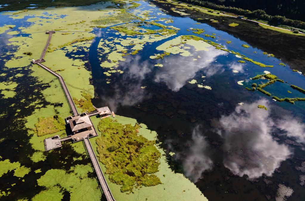 2021年9月27日拍攝的云南騰沖北海濕地(無人機照片)。新華社記者王冠森攝