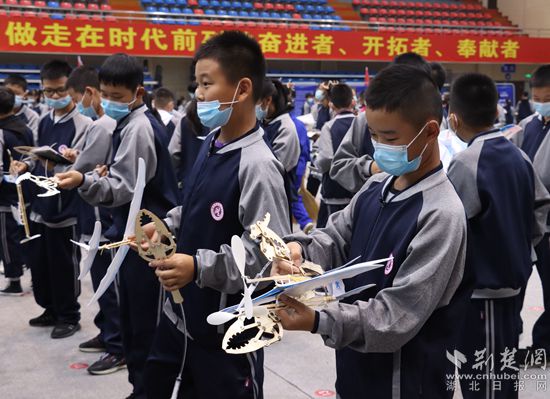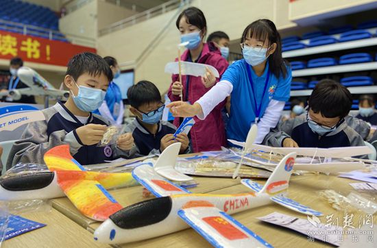 學(xué)生現(xiàn)場(chǎng)制作飛機(jī)模型。胡小軍 攝