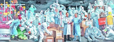 《致敬——最美逆行者》(油畫) 張志堅、劉海洋、李卓、張劍、李陶然、高明