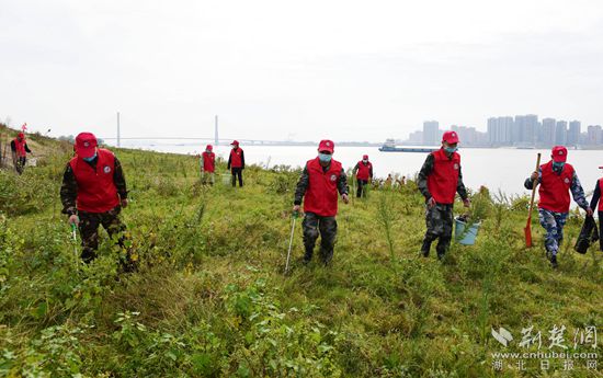 荊楚網(wǎng)(湖北日報網(wǎng))訊(通訊員 郭峰)10月17日上午,黃岡汪家墩段的江堤上格外搶眼,“黃岡退役軍人志愿服務(wù)隊(duì)”隊(duì)旗迎風(fēng)招展,近百名退役軍人志愿者身著“志愿紅”整齊列隊(duì),在這里開展以“保護(hù)‘母親河’,‘長江衛(wèi)士’在行動”為主題的志愿服務(wù)活動。
