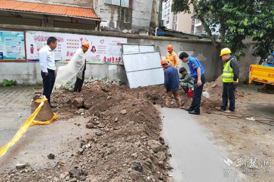 黃岡市城管執(zhí)法委執(zhí)法人員監(jiān)督燃氣安全隱患整改工作。通訊員 供圖