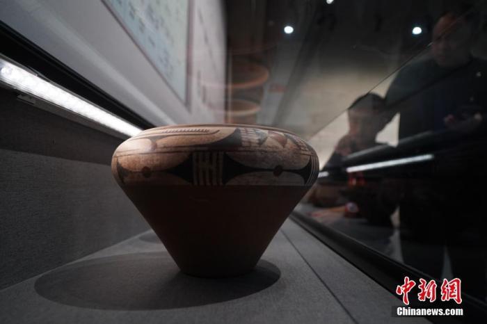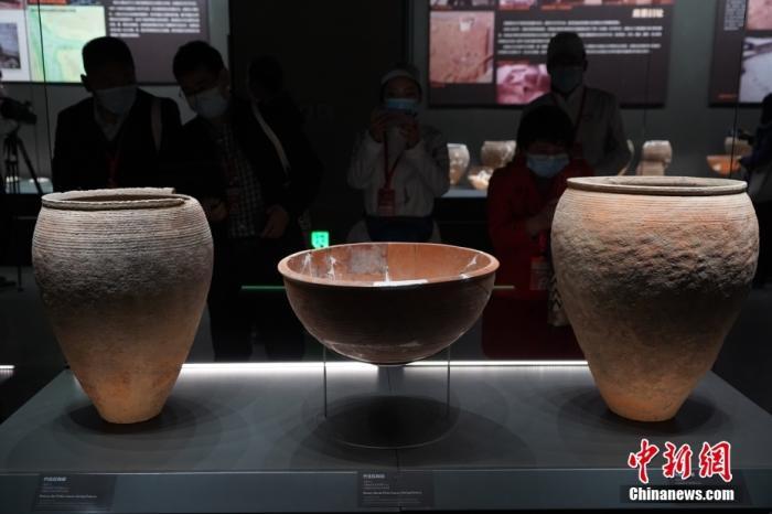 10月17日,記者探訪位于三門(mén)峽市的廟底溝仰韶文化博物館。圖為展出的陶器。 中新社記者 闞力 攝
