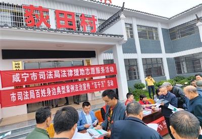 10月19日,按照市委依法治市辦關(guān)于在全市開展百姓身邊典型案例法治宣傳“百千萬”活動統(tǒng)一部署,咸寧市司法局黨委組織由干部職工和執(zhí)業(yè)律師組成近30人的法治宣傳志愿者隊伍,深入鄉(xiāng)村振興點通城縣塘湖鎮(zhèn)荻田村開展百姓身邊典型案例法治宣傳“百千萬”活動和法律援助志愿活動。