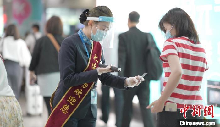 圖為機(jī)場(chǎng)工作人員服務(wù)旅客出行?!〈筮B機(jī)場(chǎng)供圖