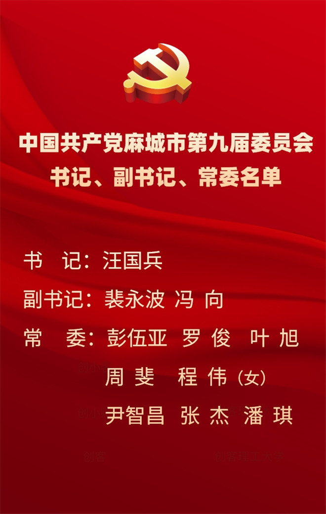 10月29日,中國共產黨麻城市第九屆委員會舉行第一次全體會議。會議選舉產生了中國共產黨麻城市第九屆委員會書記、副書記、常務委員。