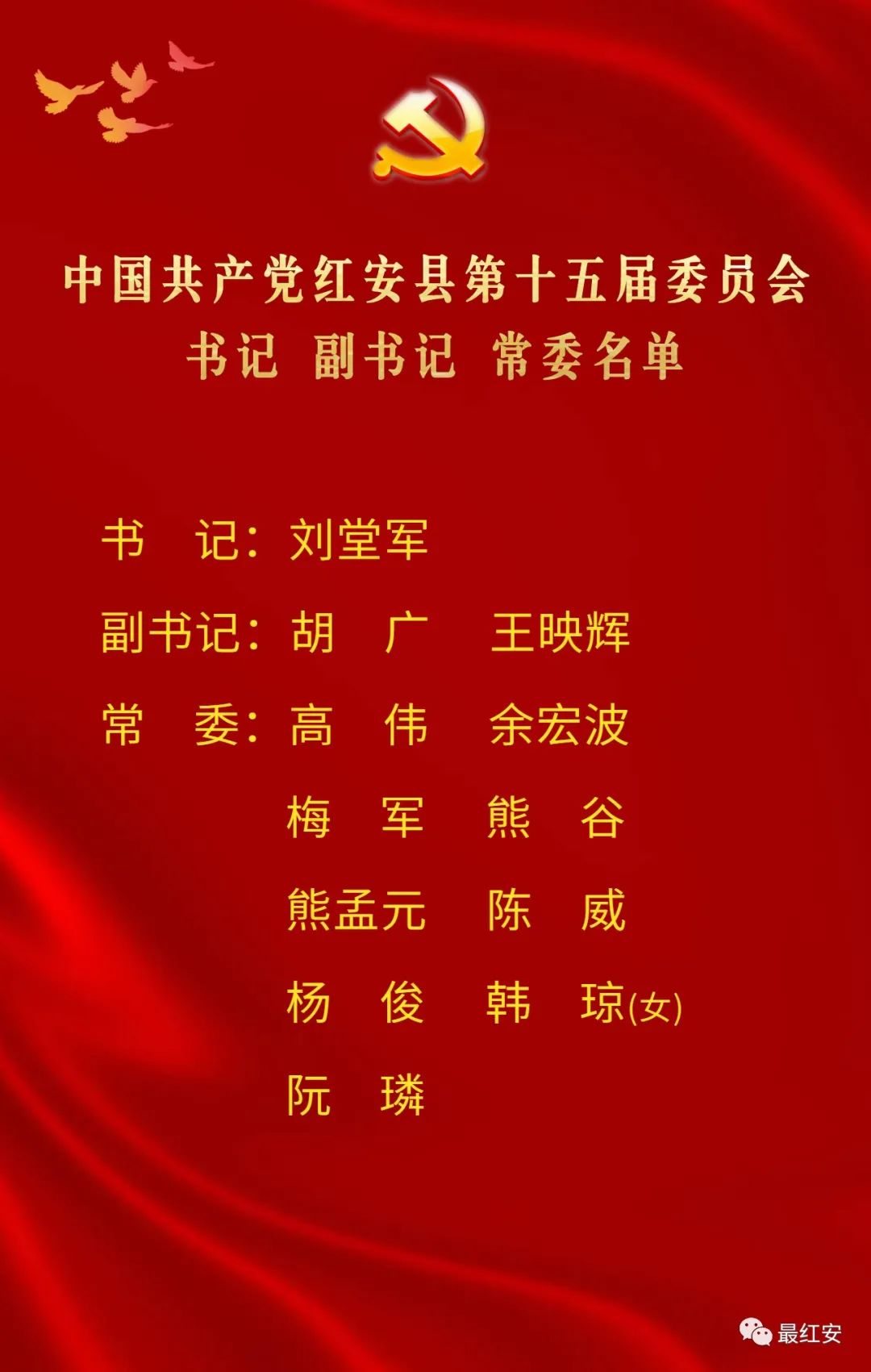 10月30日上午,中國共產(chǎn)黨紅安縣第十五屆委員會(huì)舉行第一次全體會(huì)議。會(huì)議選舉產(chǎn)生了中國共產(chǎn)黨紅安縣第十五屆委員會(huì)書記、副書記、常務(wù)委員。