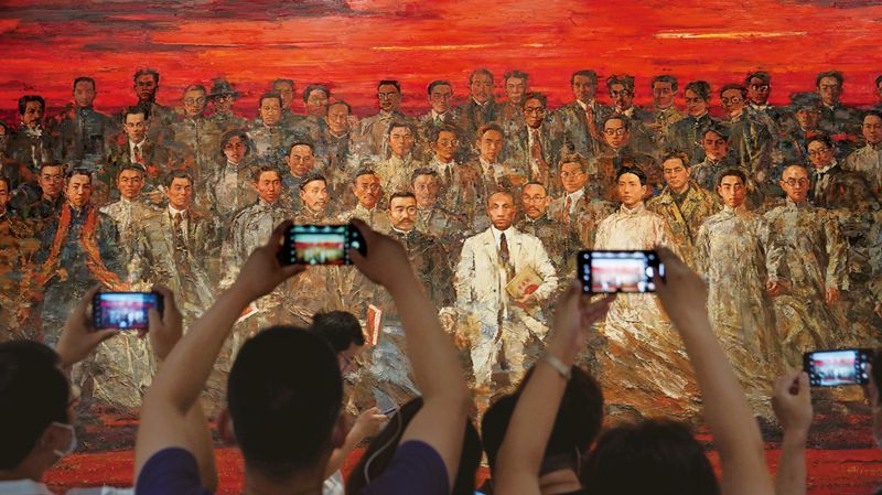 如今,在中共一大紀(jì)念館,高3米、寬7米的巨幅油畫《星火》吸引著參觀者駐足。畫面上,各地共產(chǎn)黨早期組織的50余名成員昂首闊步,意氣風(fēng)發(fā)。