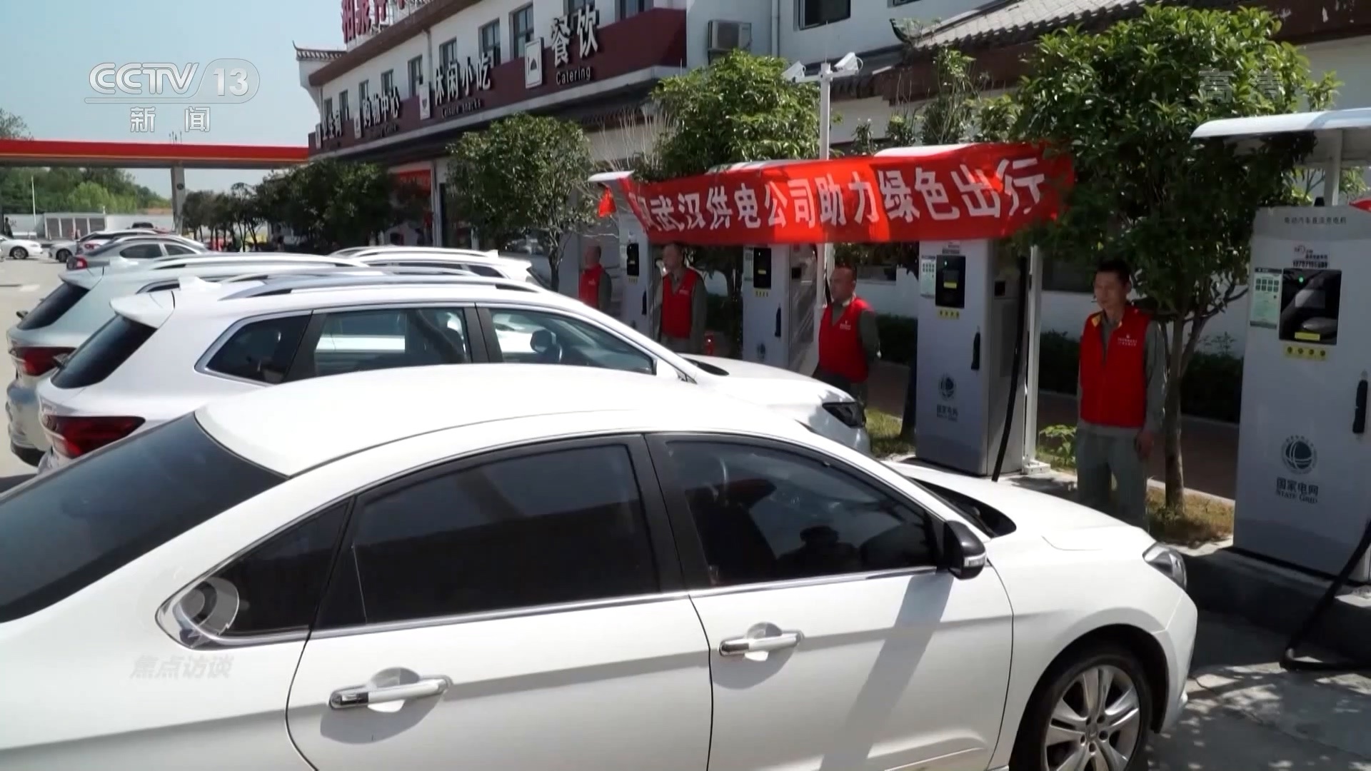 在湖北境內(nèi)的G42滬蓉高速東西湖柏泉停車區(qū),駕駛員胡泊的電動(dòng)汽車正在這里充電。