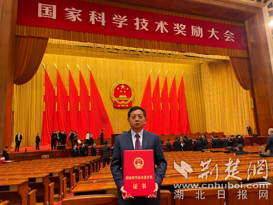 羅利軍在人民大會堂手捧國家科學技術(shù)進步獎證書。 通訊員 供圖