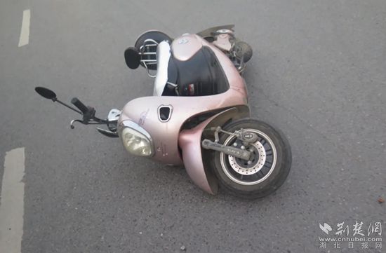 被撞倒的電動(dòng)車。通訊員 供圖